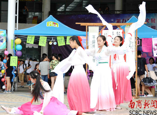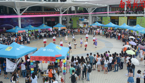 【编者按】10月8日,社团招新正式拉开帷幕。学校商业街广场摆满了大大小小的展位,为了吸引新生,24个社团使出了浑身解数,他们身穿“奇装异服”,即兴表演,上演了一场精彩的“百团大战”。本期“光影南商”记者将带你一同去领略社团风采,感受浓厚的校园文化氛围。
