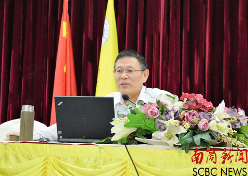 主讲人尚重生教授 (实习记者 高伟 摄)