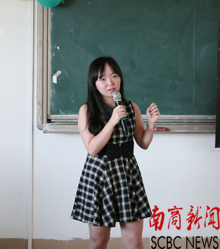 齐碧玲现为深圳中青旅国际会议展览有限公司客户经理,她以“心向上,脚向前”为主题分享她的大学时光和工作经验。