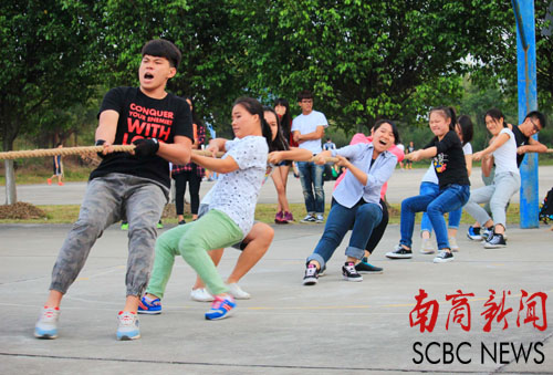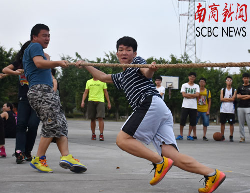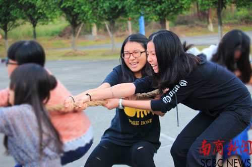 本网讯(实习记者 林彩薇 梁欢) “加油,加油!”呐喊声此起彼伏。10月19日下午,2015级“新生杯”拔河比赛决赛在篮球场举行。