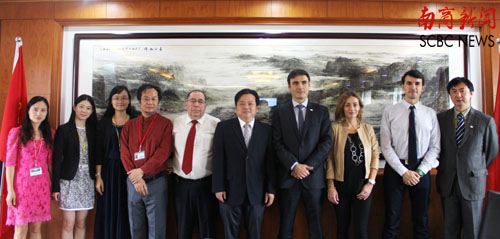 赖志立首先对伊倍鲁斯联校代表的到来表示欢迎。他说,学校已经与纳瓦拉大学开始了合作并取得了良好的进展,希望在此合作基础上能与联校的其他几所大学开展合作。赖志立介绍了我校的基本状况及“强外语”的办学特色。西班牙语专业是南商外语语种中最有特色的专业之一,每年招生规模在100人左右,是录取分数最高的专业。南商与西班牙、墨西哥等国家的多所高校建立了合作关系。赖志立表示,希望能与伊倍鲁斯联校建立交流与合作关系。
