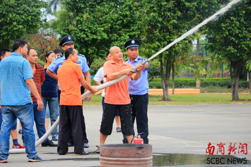 现场演示使用消防水带 (方锦仪 摄)