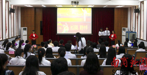 本网讯(记者 陈晓莹 实习记者 叶善恩 陈萍)11月6日,以“勿忘国耻,圆梦中华”为题的普通话演讲比赛在F101举行。此次比赛旨在树立同学们正确的世界观、价值观和人生观。经过激烈的角逐,中国语言文学系温颖珊同学卫冕冠军。学生处处长黄汉成,以及各院系老师代表观看了本次比赛。