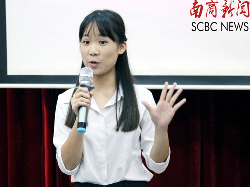 每位选手各有自己的特点,从不同事例或是不同的角度展开自己的演讲。温颖珊引用反问作为开头,通过一句“不敢忘也不能历史”带出“中国梦”这一主题,整个演讲抑扬顿挫,激情澎湃,扣人心弦,最后高呼“我是中国人”结束了她的演讲。张卉同学用一段沙画视频做背景,边播放边讲解,将70年前到现在的历史展示在人们面前。黄少欣同学以“血染五星红旗,志染九州大地”为题展开演讲,以她的家乡汕头和奶奶童年时的回忆讲述了一段真实的历史,表达了她的爱国情怀。最后,温颖珊凭借优秀的表现摘得桂冠。