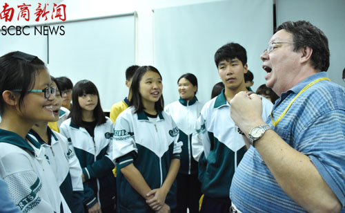 八十一中的同学们与外教交流 (实习记者 陈阳 摄)