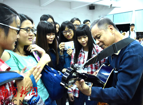 外教用吉他为同学们弹唱歌曲 (实习记者 陈阳 摄)