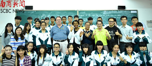 来自八十一中的刘春雷老师接受记者的采访,他说:“南国商学院外语特色鲜明,组织学生来校参加英语角,能够打破他们在英语学习上的固性思维,大大提高学生们的口语水平。”据悉,八十一中也打算举办类似英语角的活动,刘春雷希望届时能够邀请南商学生参加。活动最后,八十一中学师生与我校师生合影留念。