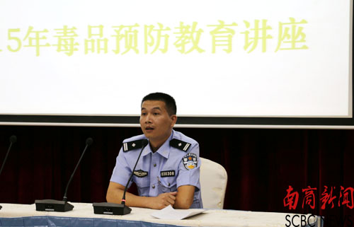 据悉,广东省禁毒委员会办公室、广东省教育厅颁发的《转发国家禁毒委员会办公室、教育部关于做好2015年秋季开学在校学生毒品预防教育工作的通知》,要求学校开展“五个一”的毒品预防教育工作,本次讲座就是其中之一。 (学生处 林翠花)
