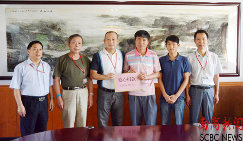本网讯(实习记者 麦芷均)11月18日上午,党委书记黎冬代表学校将善款5万余元交给了王琼英的父亲。