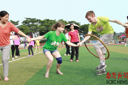 中外籍教师参加运动会 (实习记者 陈阳 摄)