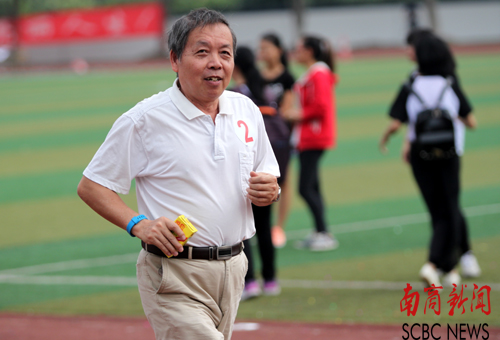 戴着蓝色腕表的李庚寅院长参加环校跑 (刘阳 摄)