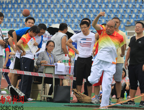 秦明吾院长投掷铅球,架势不输年轻人 (尤思琪 摄)