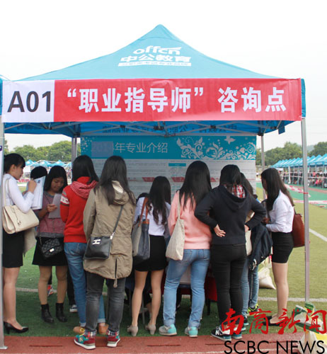 职业指导师咨询点为前来应聘的学生提供指导 (刘阳 摄)