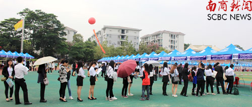 受欢迎的企业前应聘者排起了长龙 (实习记者 廖思洁 摄)
