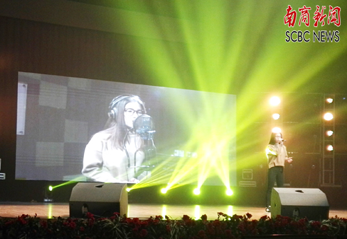 我校学生在舞台上演唱歌曲