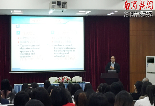 讲座主要围绕认知翻译和翻译学、当下翻译研究的新趋势和香港的翻译教育与教学展开。首先,谭载喜通过一些具体生动的公共场所公示语错误翻译实例,用五个“wh”引出各种有关翻译的中英文问题,引导师生们去认知翻译和思考翻译和翻译学,并对具体问题进行深入分析;接着,谭载喜介绍了目前翻译研究的45个热点问题,并对一些重点问题进行详细的阐述,这些热点问题对于教师进行翻译学方面的研究具有非常现实的引导作用。谭载喜还对香港8所高校的翻译教育与教学进行了介绍,并以香港浸会大学为例从教学理念、课程设置、教学用书、教学方法、课程设置、当下的模式、思考与展望等方面详细介绍了香港翻译教育的理念与实践。