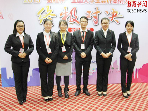 本网讯 12月26日,国际工商管理学院2013级会计专业赖俊城、梁键怡、陈秀玲、吕秋虹、谭宇全等5位同学组成的“非常4+1”队在2015年“金程杯”全国大学生会计案例大赛中成功进入全国十强,获得第五名的好成绩,刘娜获得最佳指导老师奖。
