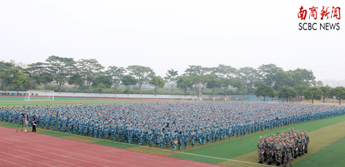 本网讯(记者 林彩薇 陈萍)1月4日上午,2015级学生军训动员大会在田径运动场举行。党委书记黎冬、常务副校长袁长青、副校长杨永强、佛山预备役国防教育训练基地军训办副主任陆振华出席大会。学院、直属系部和相关处室负责人,全体教官和2015级学生参加大会。袁长青主持动员大会。