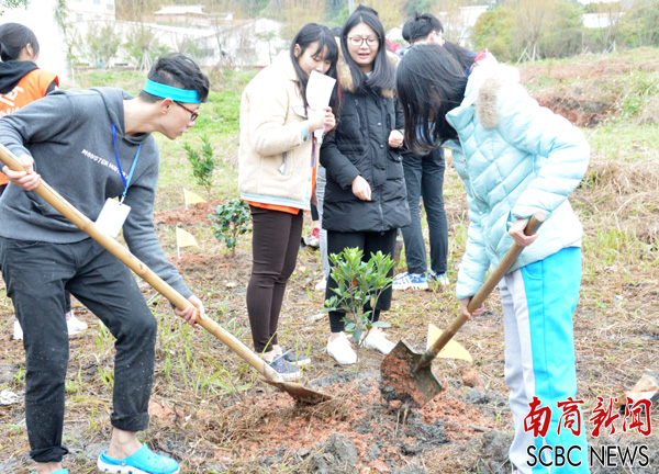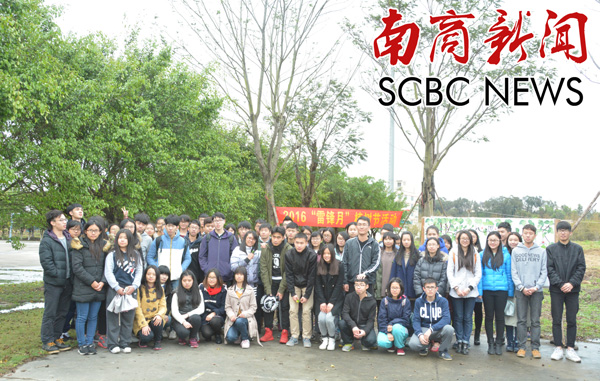 本网讯(记者 林彩薇)3月10日下午,学校在大篮球场旁空地举行2016年“雷锋月”植树节活动。副校长杨永强与师生共同种下30多棵茶花树。