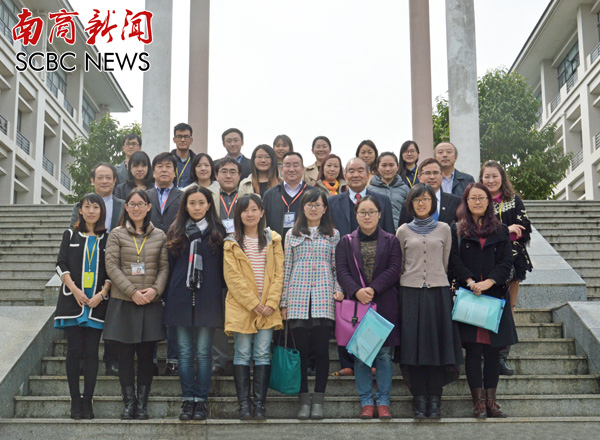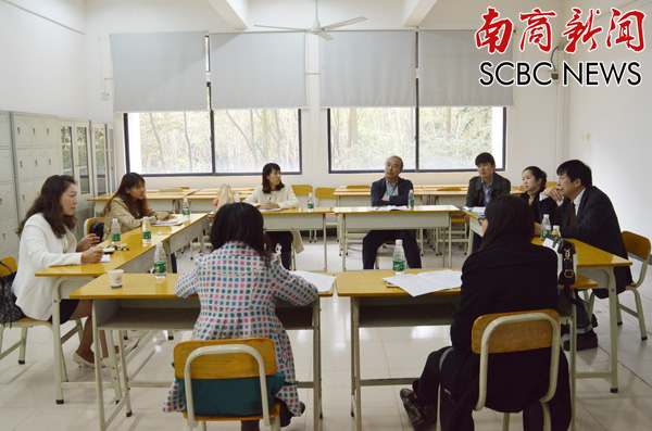 在以吉林大学珠海学院教师黄薇为组长的讨论组中,老师们分别针对日语等级考试前的复习、考试题型难度、学生的能力差别、提高成绩的困难、如何提高学生对日语的兴趣等问题提出各自的看法。秦明吾认为,通过N2级考试要求学生在学习日语方面要做到4个方面的要求,即听得懂、说得出、会翻译、写得清楚、读得明白。“要达到这5个要求,就要靠课堂和课后的练习。而南商的同传基地就是很好的练习场地。”