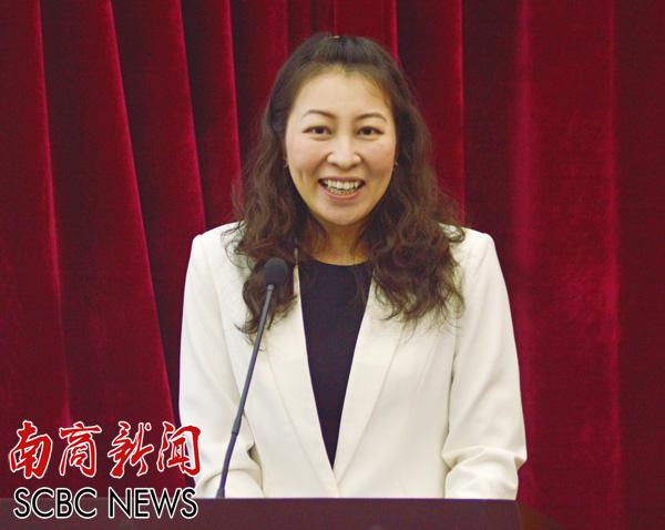 许静华:我校五大基地的运作促学生综合能力的提升(黄沐瑶 摄)