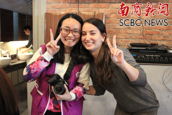学生记者与西班牙学生合影(陈嘉宜 摄)