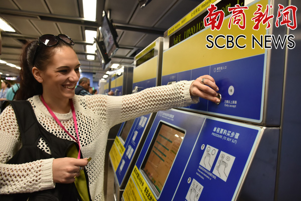 勇于尝试购买广州地铁票(陈晓霞 摄)