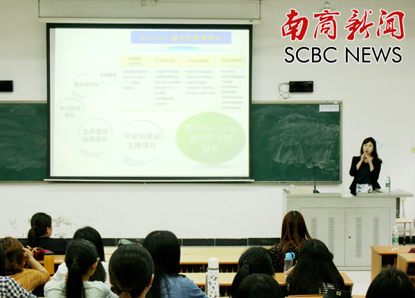 本网讯 4月12日下午,韩国祥明大学宣讲会在F105召开,宣讲会由韩国祥明大学招生办公室的Han Yerang主讲。