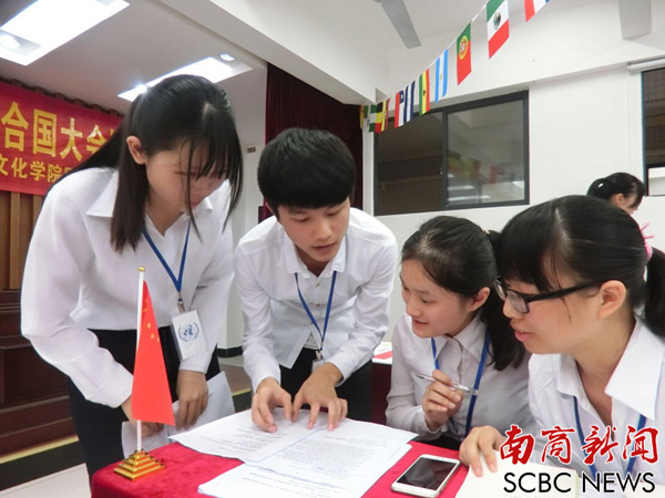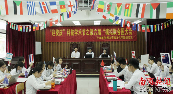 模拟联合国大会是我校西语学院模仿联合国及相关的国际机构,依据其运作方式和议事原则,围绕国际上的热点问题召开的模拟会议。由青年学生们扮演不同国家的外交官,作为各国代表,参与到“联合国会议”当中。此前,模拟联合国大会已举办五届,分别围绕伊朗核危机、非洲儿童雇佣军、全球气候变暖、海洋资源管理、网络信息安全等话题,组织青年学生进行讨论。