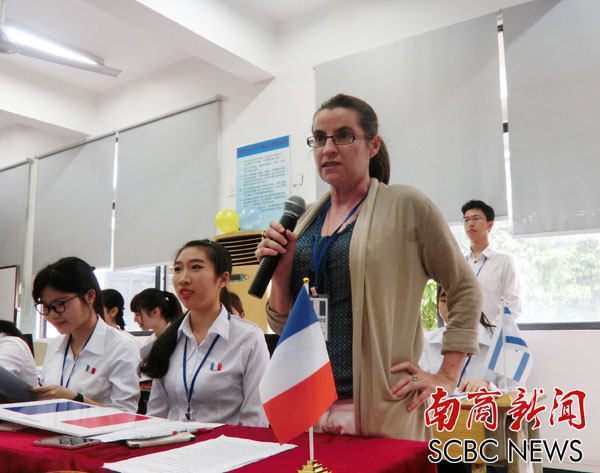 值得一提的是,“法国代表团”还邀请了法语外教Lemesue Frederique鼎力加盟,“沙特阿拉伯代表团”则身穿富有特色的黑纱服饰参加会议,使得“联合国”的氛围更为浓烈。