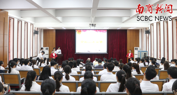 先进集体代表管理学院分团委的学生代表黄奕璇和先进个人代表吴扬宇分别在会上做了经验介绍。