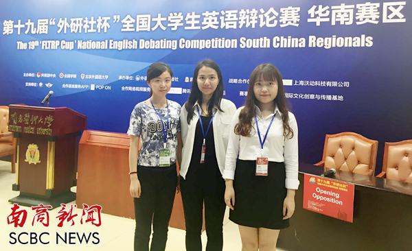 本网讯 5月6日至8日,第十九届“外研社杯”全国大学生英语辩论赛(华南赛区)在广州举行。我校英语语言文化学院学生陈逸帆、蔡艳萍代表学校参加比赛,最终获得华南赛区总决赛三等奖的好成绩。