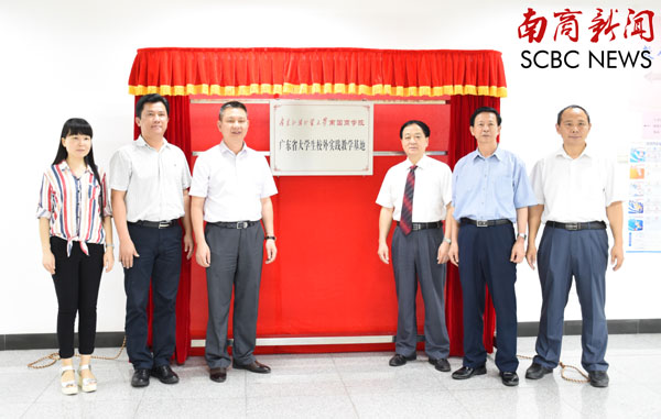 本网讯 5月20日,我校与东莞市石龙镇政府共建的大学生校外实践教学基地换牌仪式在东莞市石龙镇举行。石龙镇政府宣传教育文体局副局长杨森林、我校副校长熊匡汉等为实践基地新牌匾揭牌。