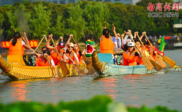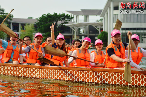 【编者按】五月五,过端午,赛龙舟。6月1日,学校第六届龙舟赛在商业街畔的中心湖精彩上演。30支队伍竞渡,一展水上“蛟龙”英姿。下面请跟随记者的镜头,一起来欣赏龙舟赛精彩的瞬间。