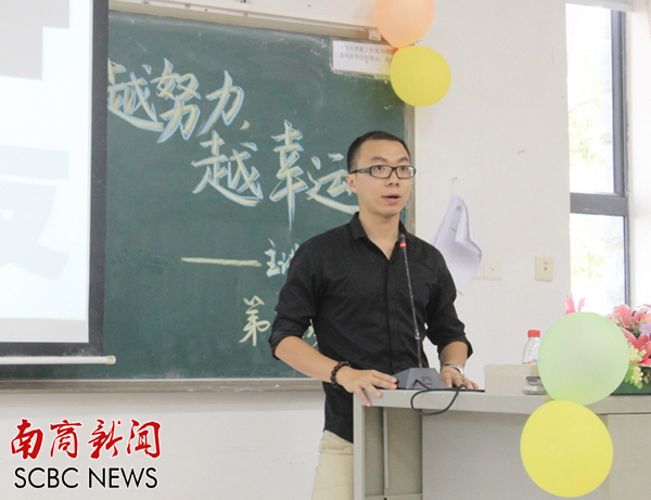 本网讯 6月23日,由南国薪火校友服务中心举办的第32场校友讲坛在教学楼F104举办。2007级商务英语专业校友陈荣德以“越努力,越幸运”为主题,返校分享自己的创业探索之路。