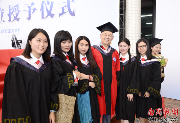 唐晓敏在毕业典礼上与同学们合影(陈锴进 摄)