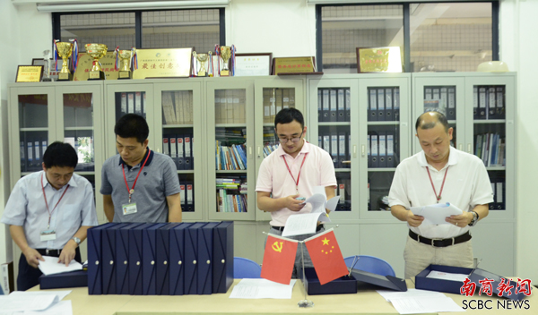 党委检查党建工作考核材料的准备情况 (陈锴进 摄)