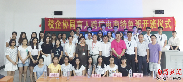 本网讯 7月8日,国际经济与金融学院与企业共同开展的“校企协同育人跨境电商特色班”在F102举行开班仪式,常务副校长赖志立与广州倪科商务公司总经理胡陟应邀出席了开班仪式。会上,赖志立代表学校与广州倪科商务公司签订了校企合作协议。