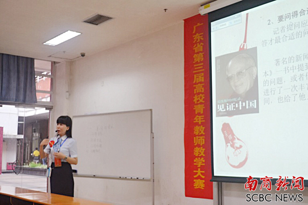 本次比赛有来自全省 119 所高校的 145 名青年教师参加角逐,分为人文社会科学一组、人文社会科学二组、理科组和工科组四个组,每组前18名者评出一等奖1名、二等奖7名、三等奖10名。我校选手周文的参赛课程为《新闻采访学》,以开放式模拟采访的教学方法,全面而深入地讲解了“善问的要求”等课程内容。最终以精彩而灵活的课堂打动评委,以总分89.46的优异成绩位居人文社科组一组的第10名。