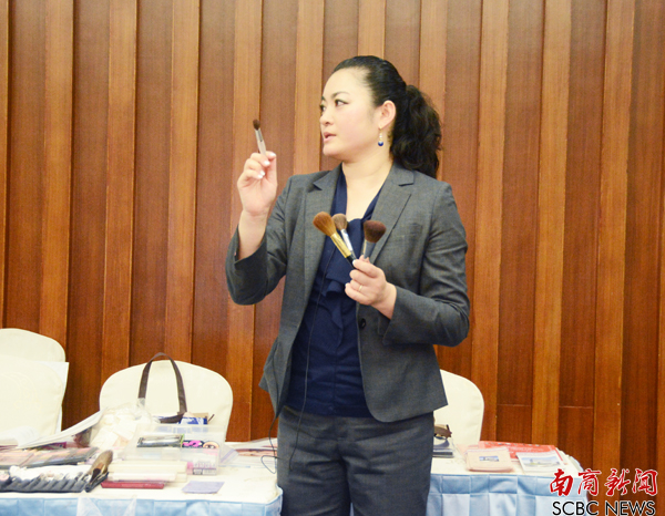 宫本由美介绍化妆刷的使用方法 (刘阳 摄)