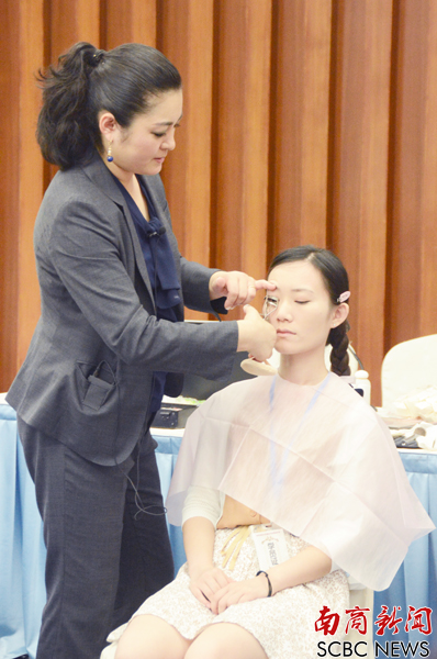 据悉,本次培训从7月10日开始至15日结束,为期6天,课程为中日双语教学,包含美容护肤基本理论与实际操作、美发基本理论与实际操作及化妆基本理论与实际操作等3部分内容。经过选拔,共有52名师生参加。
