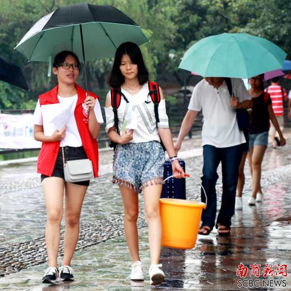 为确保新生报到顺利进行,学校派出部分志愿者前往广州东站、白沙村路口等地迎接新生。校园里随处可见身穿各色衣服的志愿者,其中学生党建研究会和校青年志愿行动指导中心的志愿者分布在学校各处,为新生与家长提供志愿服务。