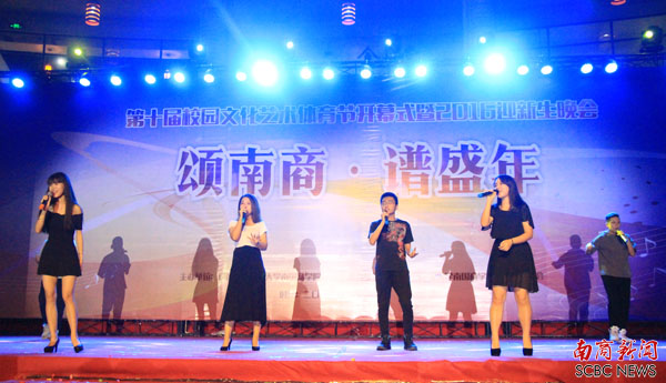 9月12日晚,2016年暨迎新晚会第十届校园文化艺术体育节开幕式在文化广场举行。优美动听的演唱、曼妙妖娆的舞蹈、捧腹大笑的小品、时尚吸睛的模特走秀,组成了这台别样精彩的迎新晚会。