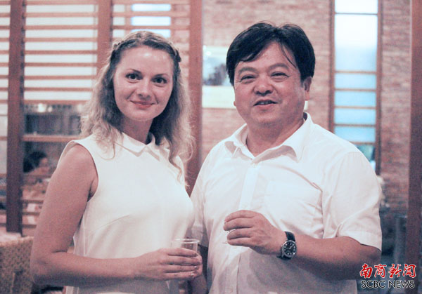 赖志立与外教举杯共庆(陈嘉宜 摄)