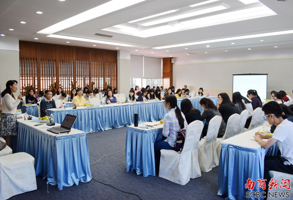 陶友兰围绕翻译硕士目标、翻译能力与译者能力、笔译教学培养综合模式等模块,展开“以任务为中心的翻译阅读和讨论、以技巧为中心的翻译工作坊、以项目为中心的翻译实践”的详细说明。其中,她介绍了译者必备的3项基本能力,即交际能力、职业能力和思辨能力,并对在座教师们提出了3点建议。她建议教师在日常的教学中,要多传授与实践管理、工作效率相关的理念,培养学生发散性思维和解决问题的能力,尽可能地改变授课环境,将笔译实验室引入课堂,丰富学生的行业见识。