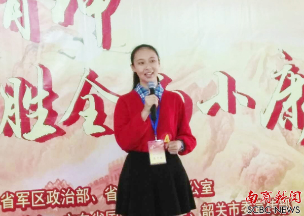 比赛中,何佩嘉以《从我们做起》为主题进行演讲,演讲中她讲述了自己的父亲在扶贫工作中感人的故事,认为长征精神对于全面建成小康社会而言,是人与人之间真诚的交流与互助,也是民族责任心、自豪感的体现。她的演讲获得了在场评委的认可,顺利进入决赛环节。决赛以现场抽签即兴演讲的形式开展,何佩嘉同学凭借沉稳的心理素质、大方得体的台风获二等奖。