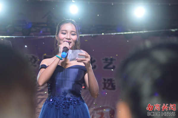 冠军得主阳晓晴与上届冠军合影(实习记者钟晓晴 摄)