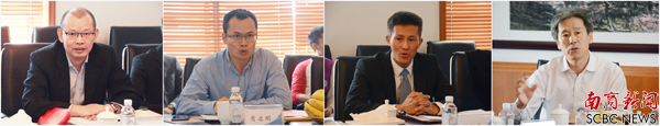 随后,与会嘉宾围绕空港经济协同创新中心的发展工作展开热烈讨论。肖启明介绍了翼通公司的基本情况,并表示中心的人才培训形式可以多样化,结合南商的学科优势,可以针对企业开展专项培训或合作办学等。杨元大致介绍了航源公司的基本情况,并围绕空港经济协同创新中心在物业资源上的主要发展方向提出建议。广州白云国际物流有限公司总经理助理任旭焱讲解了其公司的发展现状,他认为项目的开展应该为企业提供智力支持,将学校的社会效益与企业的经济效益相结合。曾伟玉在讲话中称,中心的发展要立足于现实的需求,在学科布局和学科带头人方面要打造鲜明特色和自身优势。林吉双从研究理论、战略定位、发展模式、发展路径、落地措施等发表见解,指出中心的发展应该从一两个小点切入,逐步实现小目标。