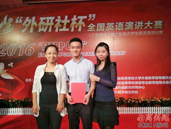 本网讯 11月6日,2016“外研社杯”全国英语演讲大赛(广东赛区)暨广东省大学生英语演讲比赛在广东技术师范学院举行。我校2015级陈俊同学代表学校参加了比赛,荣获本次大赛二等奖。