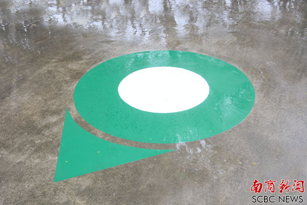 沿木板小径一路向西,走过高尔夫球场来到行政楼一侧,你会看到地上一个大大的绿白相间的“水滴形”标志,原来这是健步走环形道的专门路标,沿着这样的路标你会一路走过教学楼、宿舍、田径场、游泳池、开心农场,最后回到校南门,正好环绕校园一整圈,全程3.5公里。